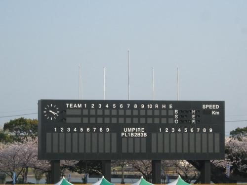 従来の手動式から電光表示式になりました。茨城県初のスピードガンが導入され、投手の球速も電光表示されます。