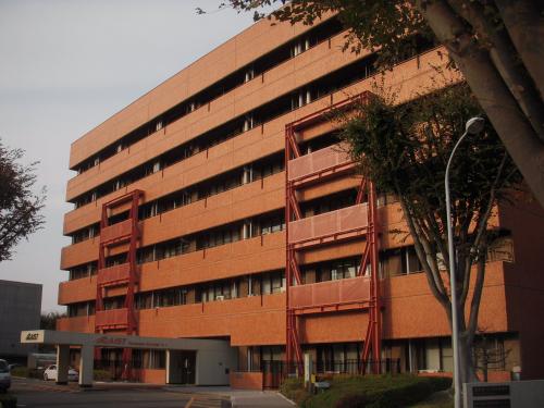 研究施設の外観です。外壁部にブレースを設置し地震に強い建物になりました。